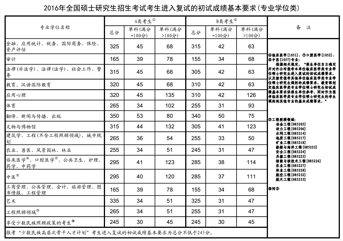首页 > 单页内容>首页中间内容>第一篇内容 > 2016年全国硕士研究生入学考试复试分数线