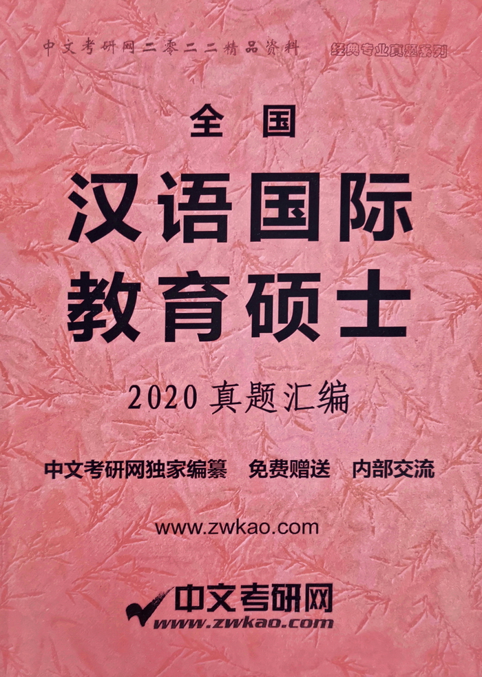 4.郑重声明:中文考研网官网(网址www.zwkao.com)是互联网上唯一提供正品《全国汉语国际教育硕士2020真题汇编》的网站,除中文考研网官网之外,互联网上绝无任何一本真题汇编是全真完整考场原卷的合集,所有网上出售的真题汇编全部都是假冒资料。