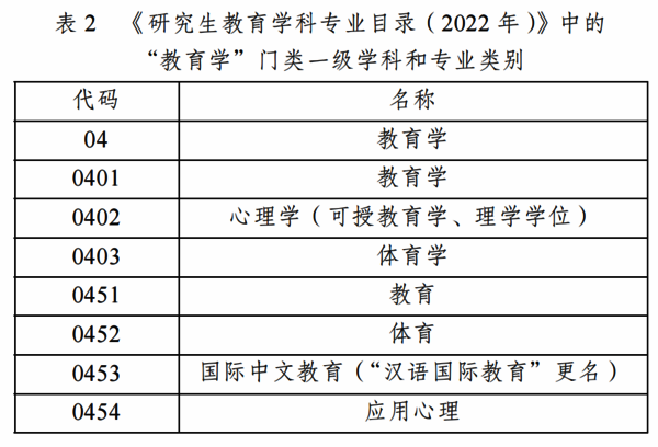国务院学位委员会、教育部2022年9月14日公布的《研究生教育学科专业目录(2022年)》正式将该专业名称确定为“国际中文教育”,正式列入教育学门类,学科代码仍为0453,可授予博士和硕士学位(参见表2)[11]。这意味着国际中文教育高端人才培养和学科建设迎来重大发展机遇。