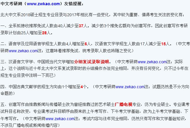 七、中文考研网开办的北大各专业2018专业辅导将自十一期间面授起开始,全程到2018年4月底结束。各专业辅导目前均可报名,详细介绍及报名链接如下(2019辅导将于2018年期间开设,请2019考生届时留意中文考研网专业辅导栏目http://www.zwkao.com/zyfd.html的介绍):