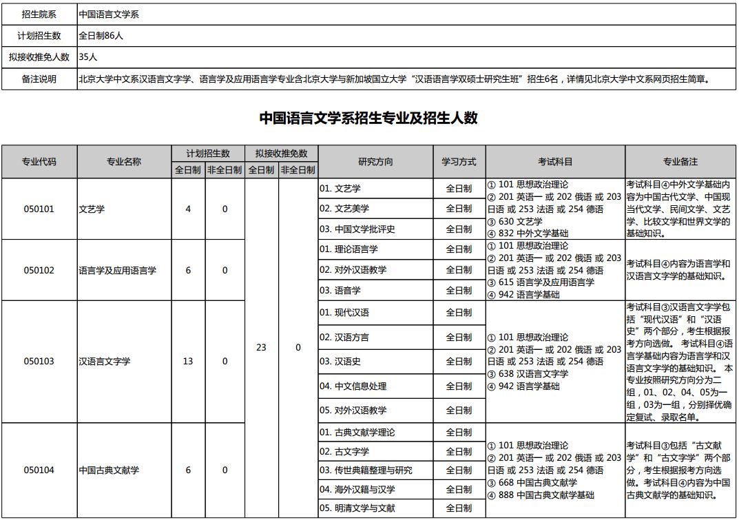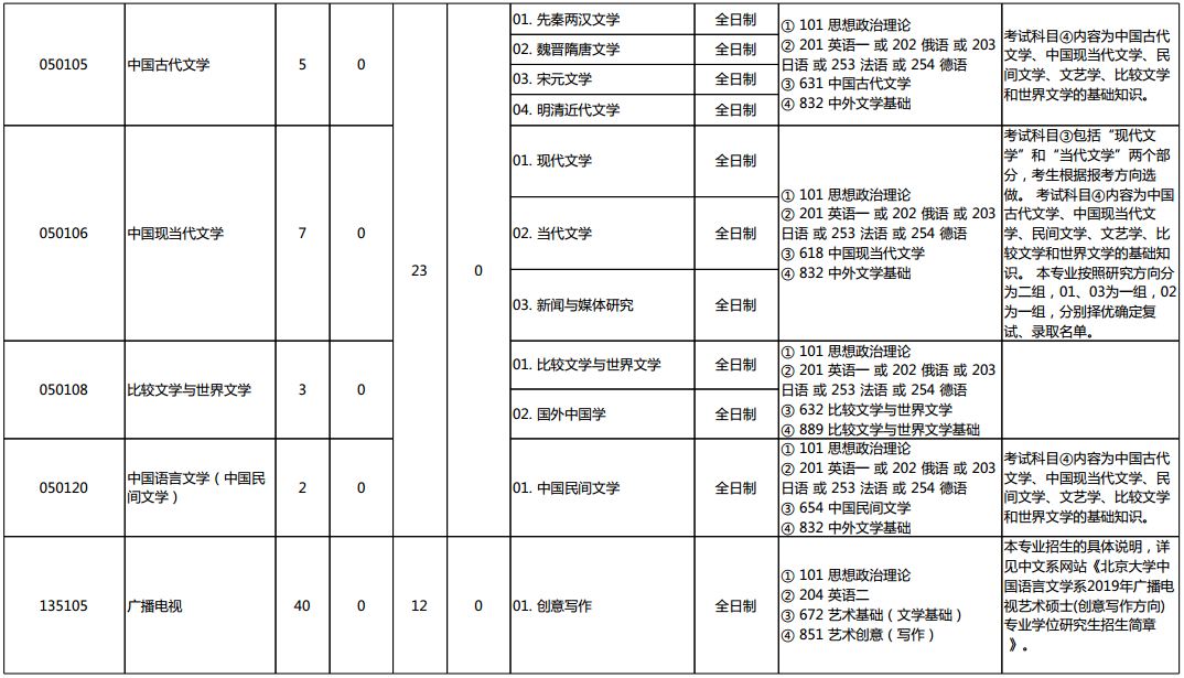 北京大学中文系2019年硕士招生专业目录与2018年相比有一些变化,其中较为重要、值得考生关注的变化有: