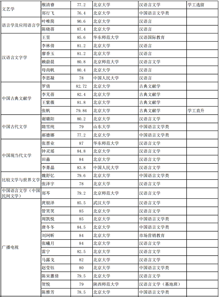 > 北京大学中文系2019年拟接收推免研究生公示名单
