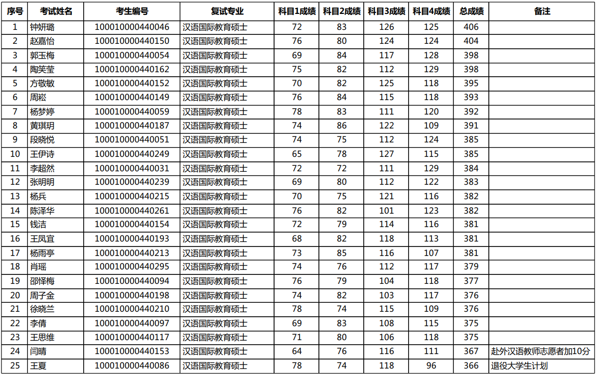 参见《附件1:北京大学对外汉语教育学院2020年硕士研究生(内地考生)复试名单》