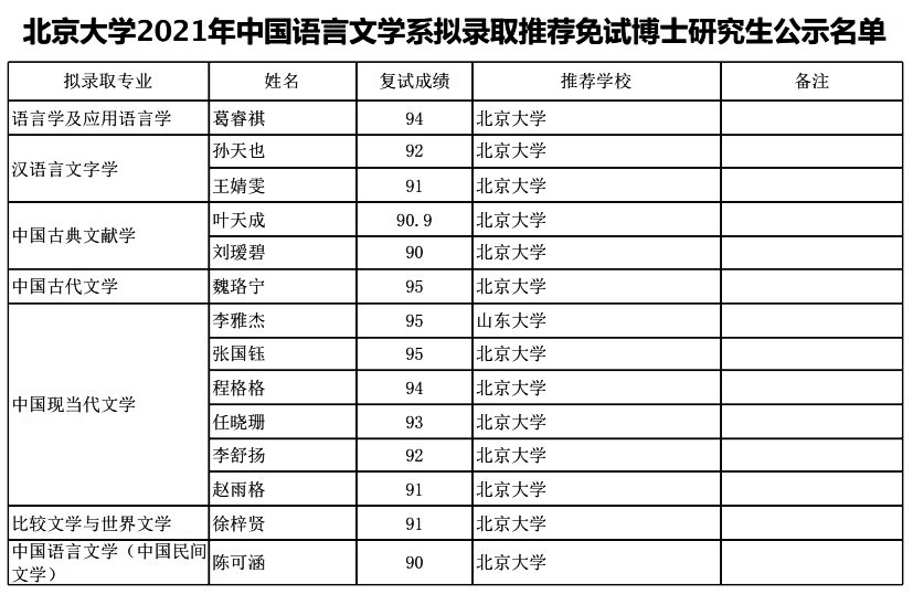 附件1:北京大学2021年中国语言文学系拟录取推荐免试硕士研究生公示名单.pdf