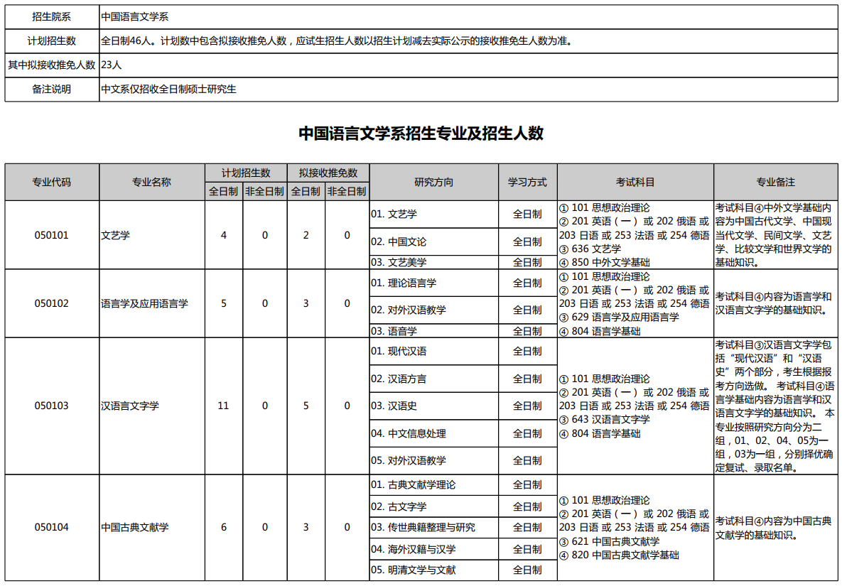 汉语言文字学计划推荐免试人数由6人减少至5人