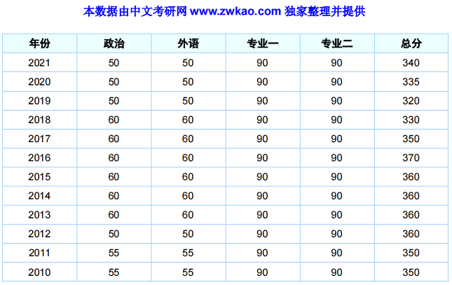 中山大学汉语国际教育硕士2010-2021年复试分数线