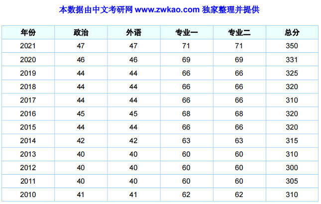 浙江师范大学汉语国际教育硕士2010-2021年复试分数线