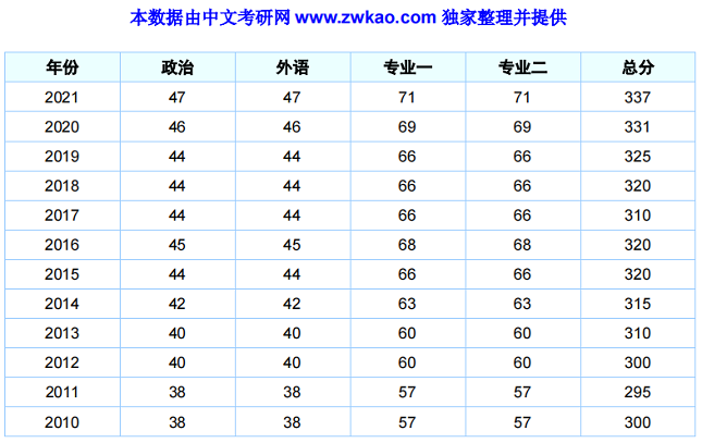 安徽师范大学汉语国际教育硕士2010-2021年复试分数线