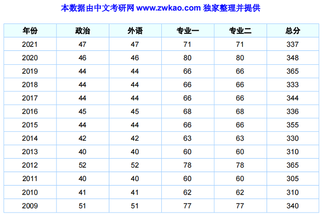 华中师范大学(语言研究所)汉语国际教育硕士2009-2021年复试分数线