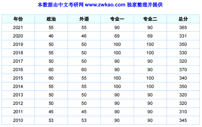 华中科技大学汉语国际教育硕士2010-2021年复试分数线
