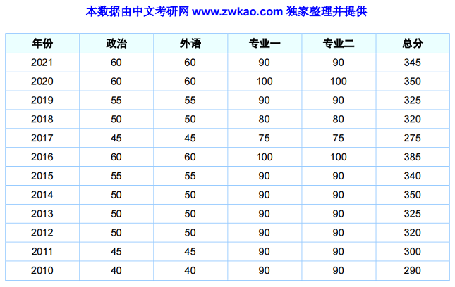 武汉大学汉语国际教育硕士2010-2021年复试分数线