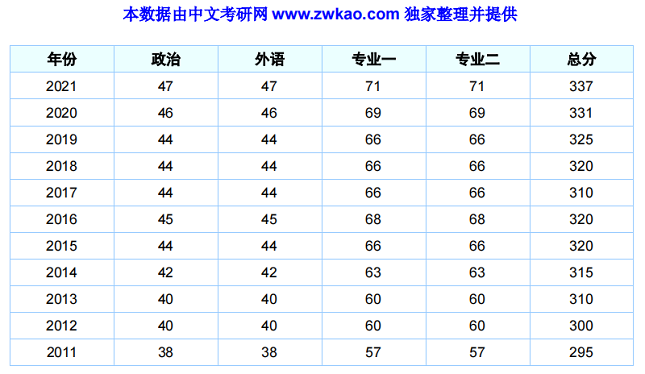渤海大学汉语国际教育硕士2011-2021年复试分数线