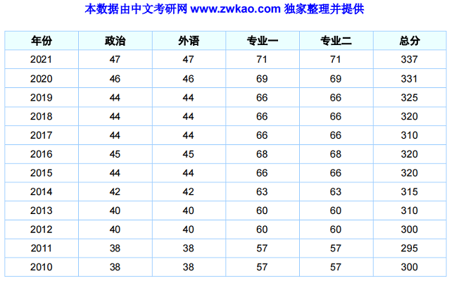 辽宁师范大学汉语国际教育硕士2010-2021年复试分数线
