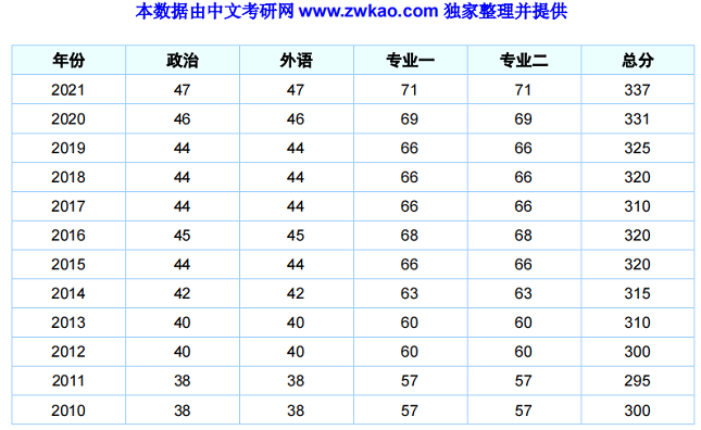 辽宁大学汉语国际教育硕士2010-2021年复试分数线