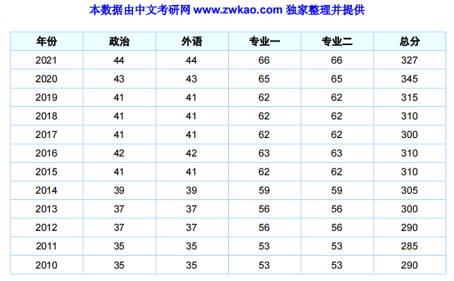 内蒙古师范大学汉语国际教育硕士2010-2021年复试分数线