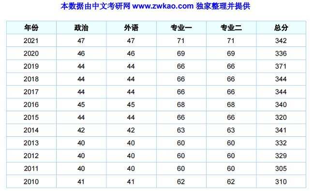 上海师范大学汉语国际教育硕士2010-2021年复试分数线