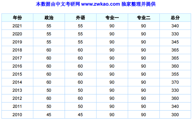复旦大学汉语国际教育硕士2010-2021年复试分数线