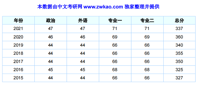 对外经济贸易大学汉语国际教育硕士2015-2021年复试分数线