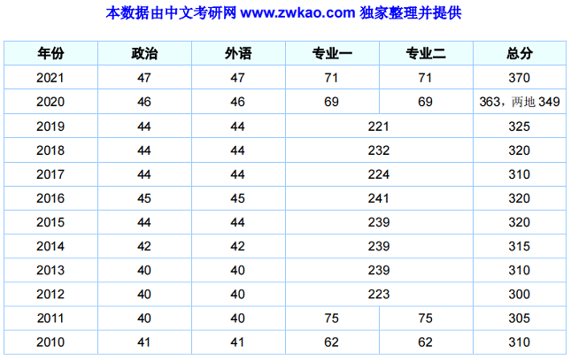 北京外国语大学汉语国际教育硕士2010-2021年复试分数线