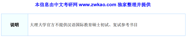 中文考研网向报考大理大学汉语国际教育硕士的同学免费赠送大理大学汉语国际教育硕士完整版真题等多种资料,请您到中文考研网精品资料栏目(网址:http://www.zwkao.com/jpzl.html)申请会员和领取资料。