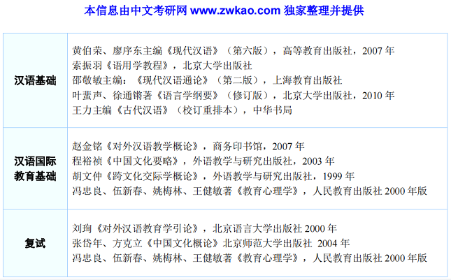 海南师范大学汉语国际教育硕士考研官方参考书目