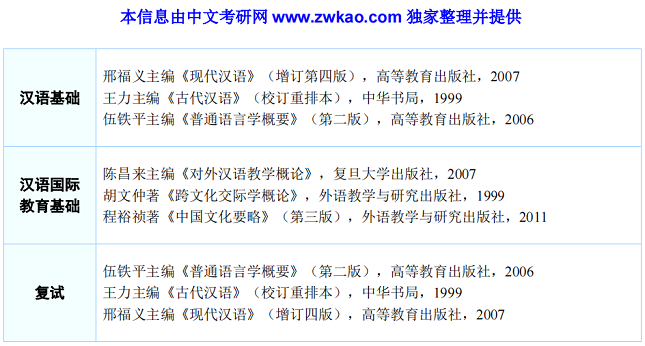 广西师范大学汉语国际教育硕士考研官方参考书目