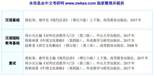 广东外语外贸大学汉语国际教育硕士考研官方参考书目