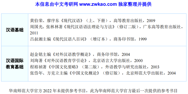 华南师范大学汉语国际教育硕士考研官方参考书目