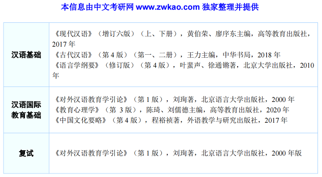 山东财经大学汉语国际教育硕士考研官方参考书目