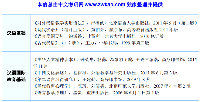 天津师范大学汉语国际教育硕士考研官方参考书目