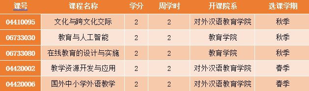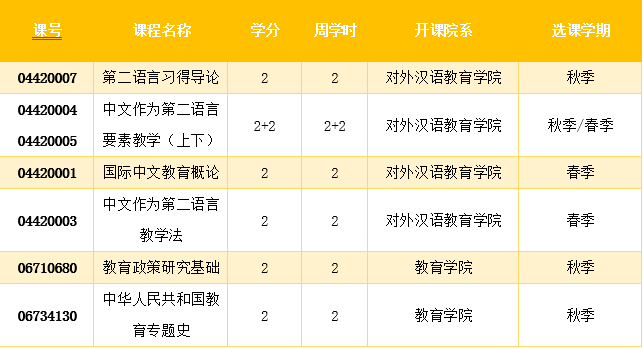 3)至少四场由对外汉语教育学院或教育学院开设的汉语国际教育学术讲座(其中每个学院不少于2场)。