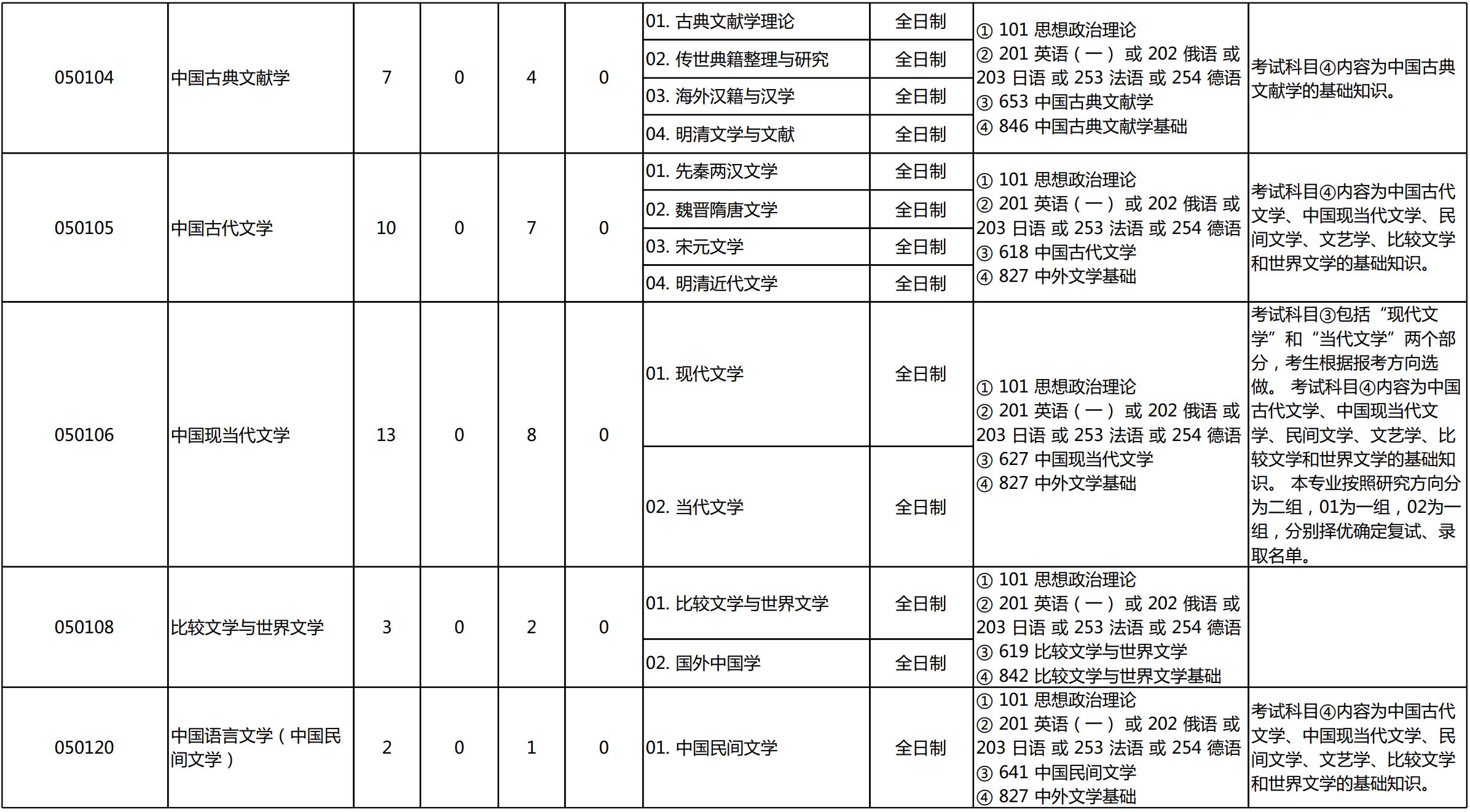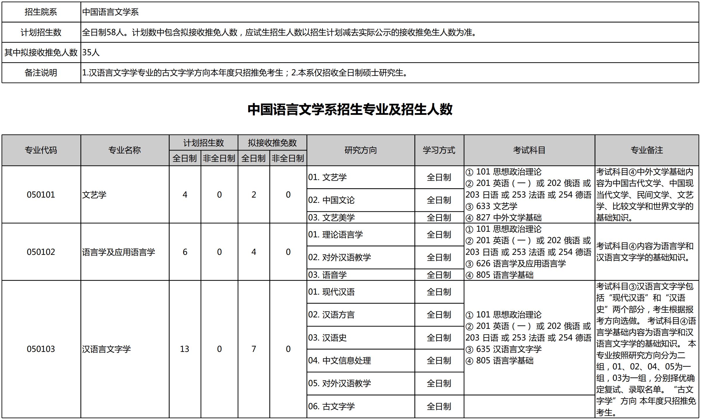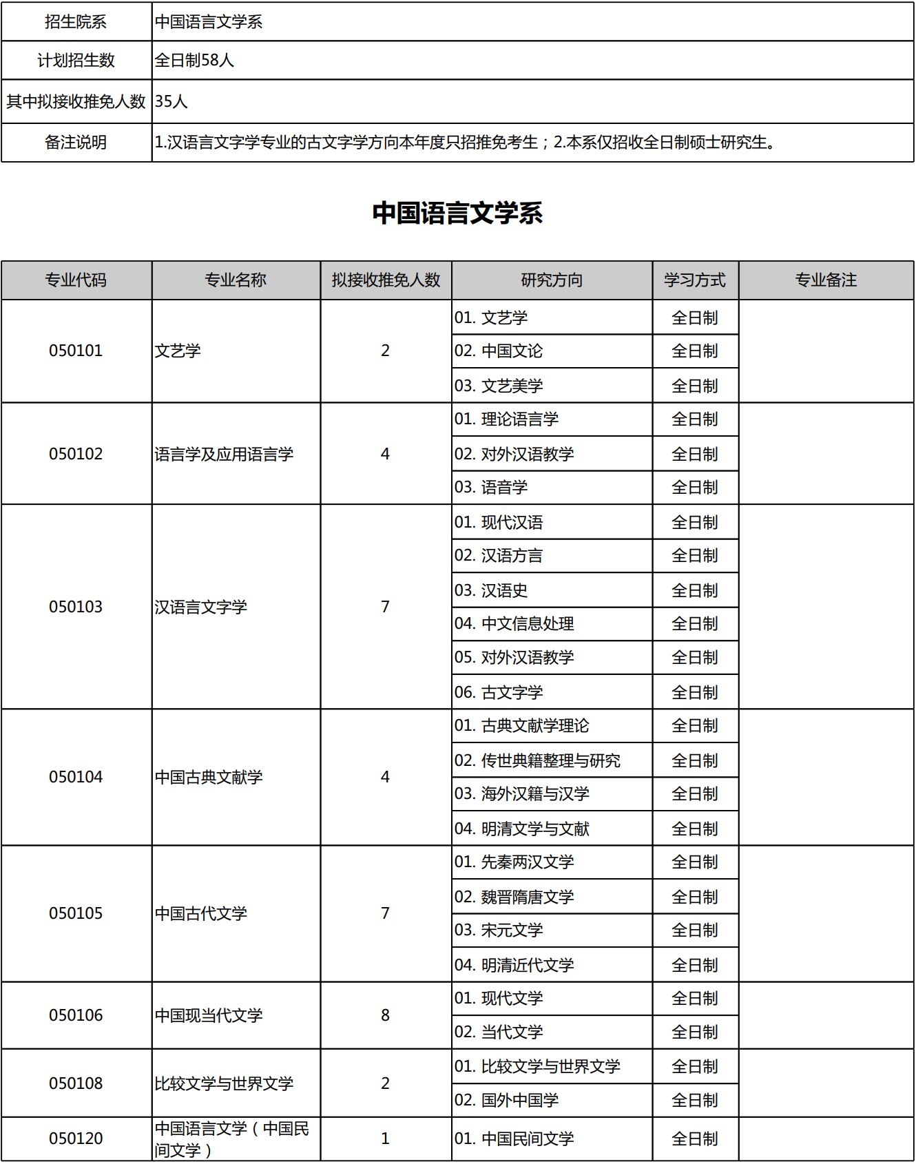 附:北京大学中文系2024年推荐免试硕士招生专业目录