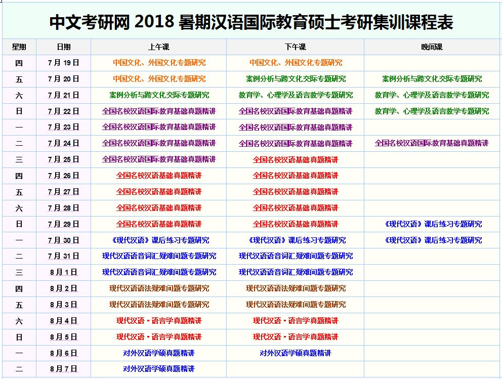 中文考研网2018暑期汉语国际教育集训辅导项目