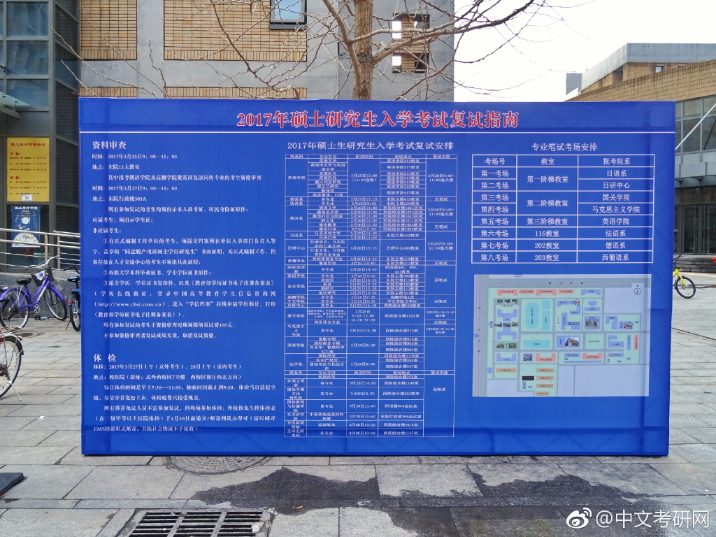 北京外国语大学2017复试公告牌